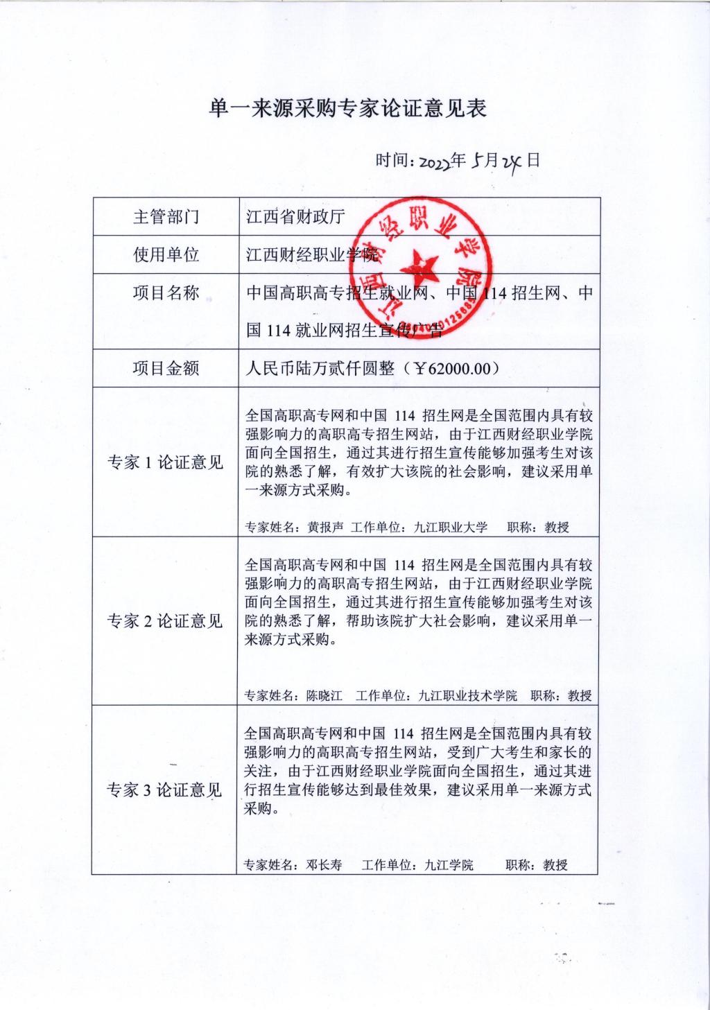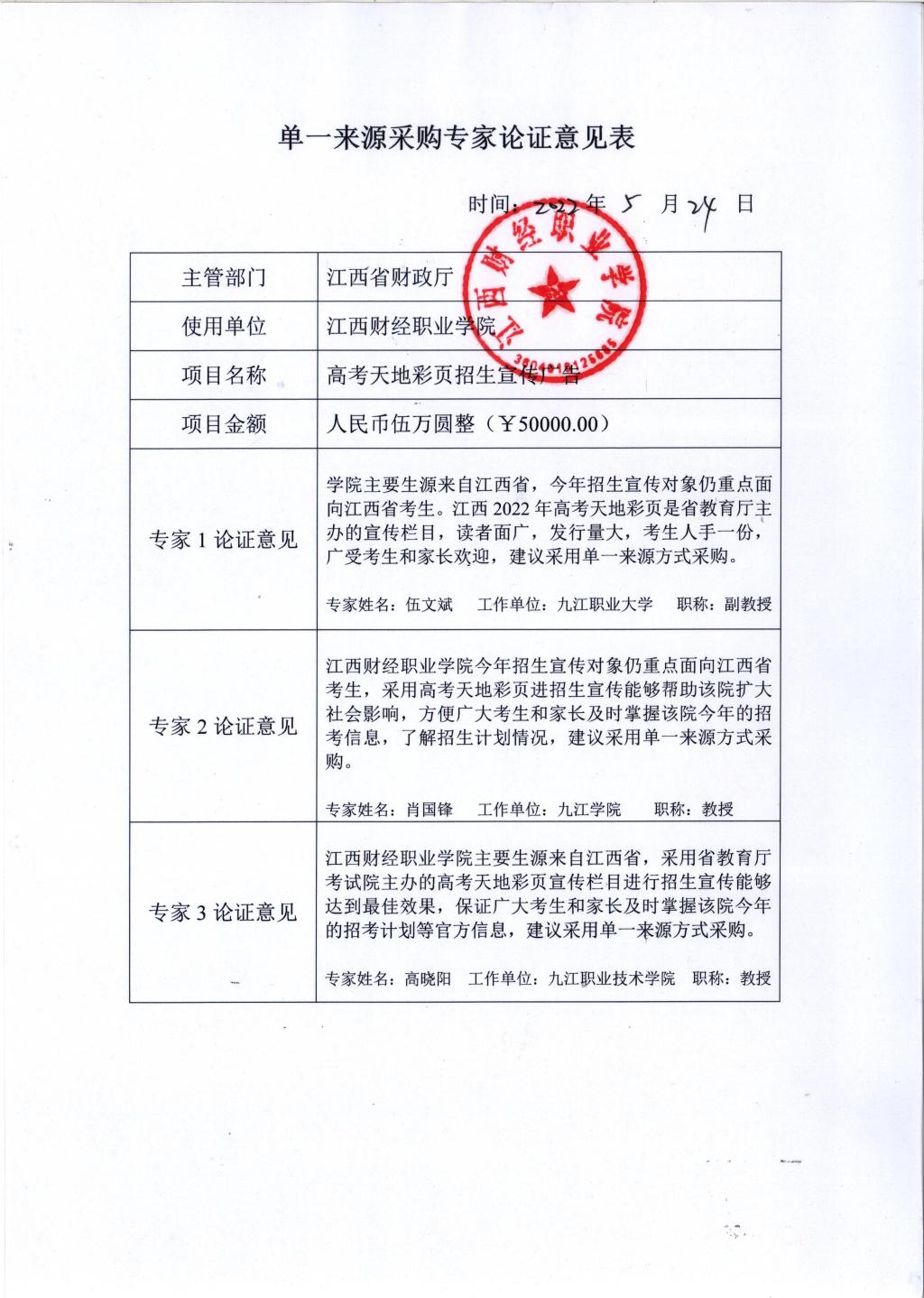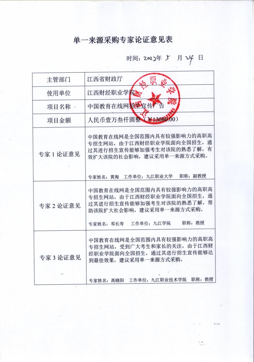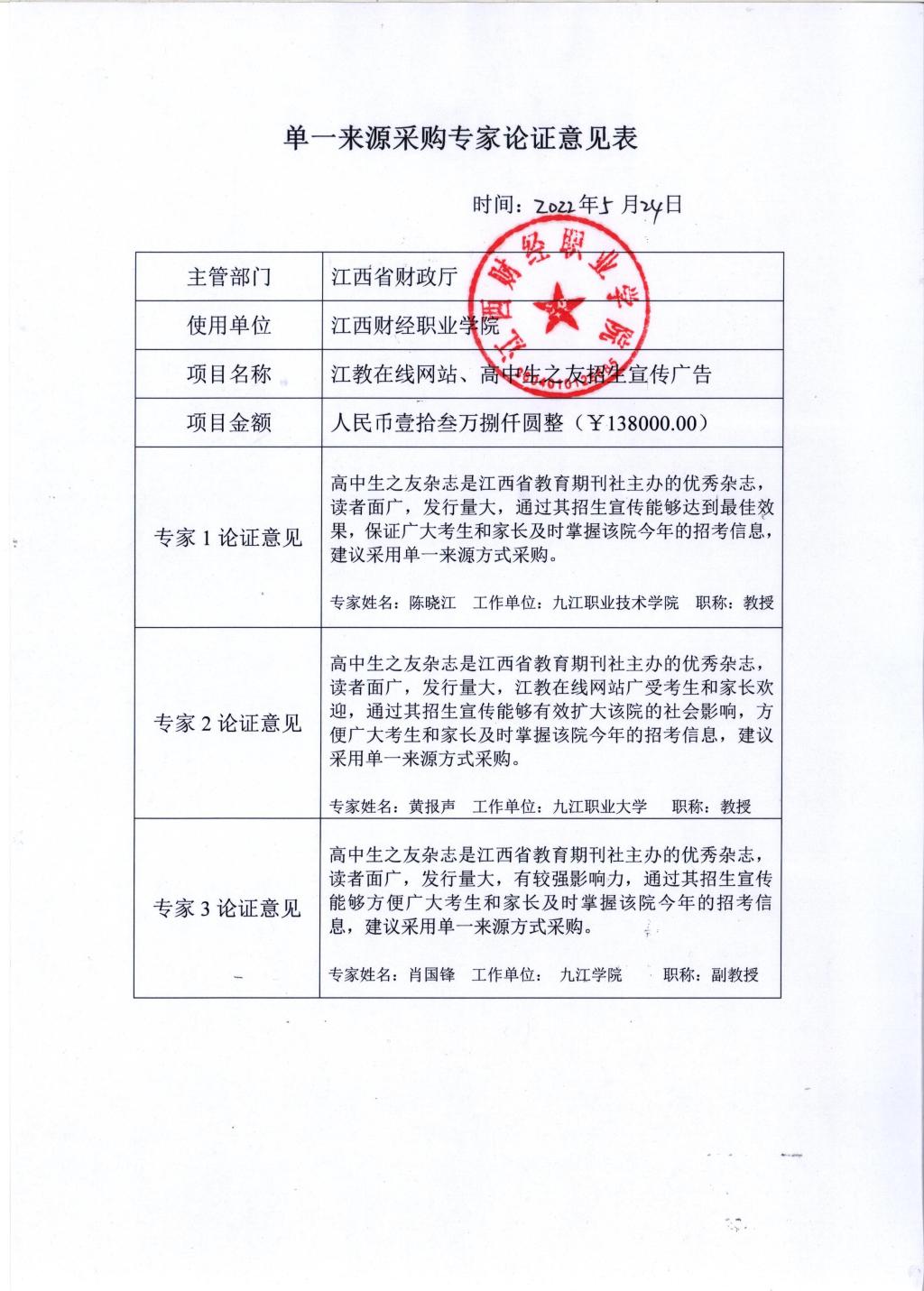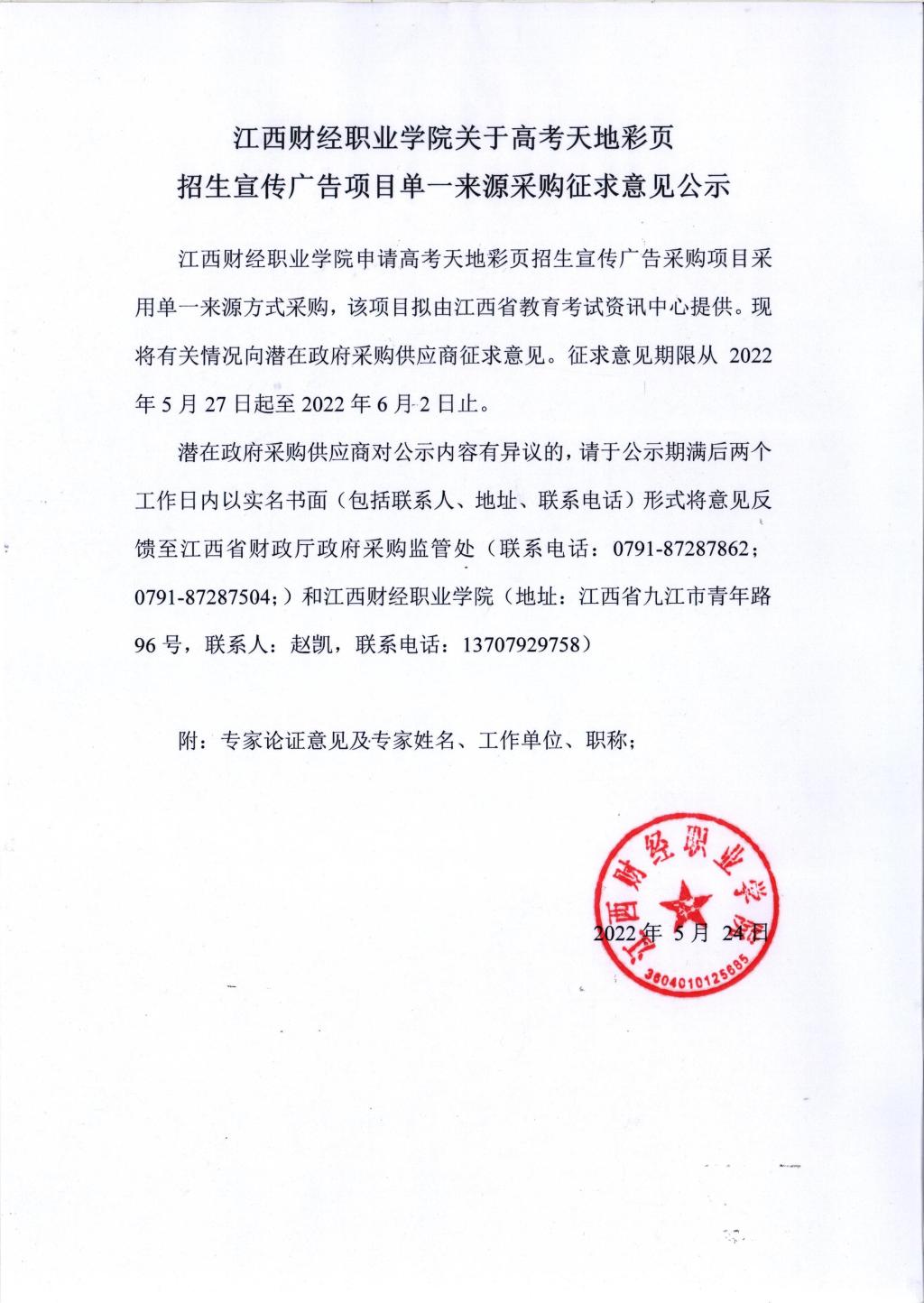江西財經職業學院關于招生宣傳廣告項目單一來源采購征求意見公示