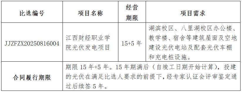 江西財(cái)經(jīng)職業(yè)學(xué)院光伏發(fā)電項(xiàng)目的潛在參選人應(yīng)在九江振發(fā)招標(biāo)咨詢有限公司獲取比選文件,并于 2025年03月17日09點(diǎn)30分(北京時(shí)間)前提交參選文件。