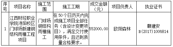 二、項目名稱:江西財經職業學院潯陽校區門球場新建鋼結構雨棚工程項目