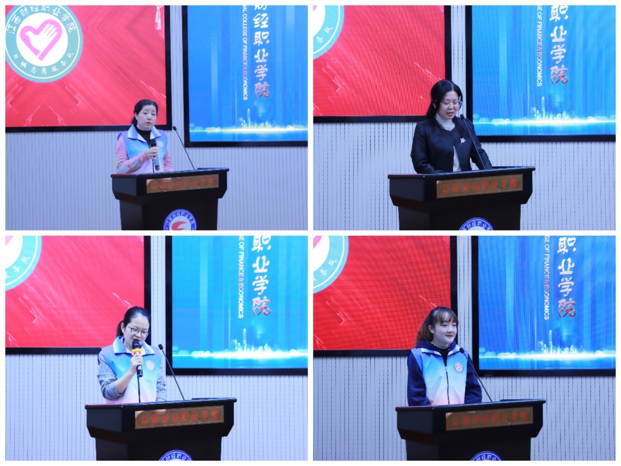授旗儀式后,開展了“財院巾幗紅,獻禮二十大”主題宣講活動。四位分別來自60、70、80、90年代的志愿者代表從不同角度,將自身經歷與志愿服務情懷娓娓道來,聲情并茂地表達了對女性的關切,對職業的熱愛,對奉獻的歌頌。