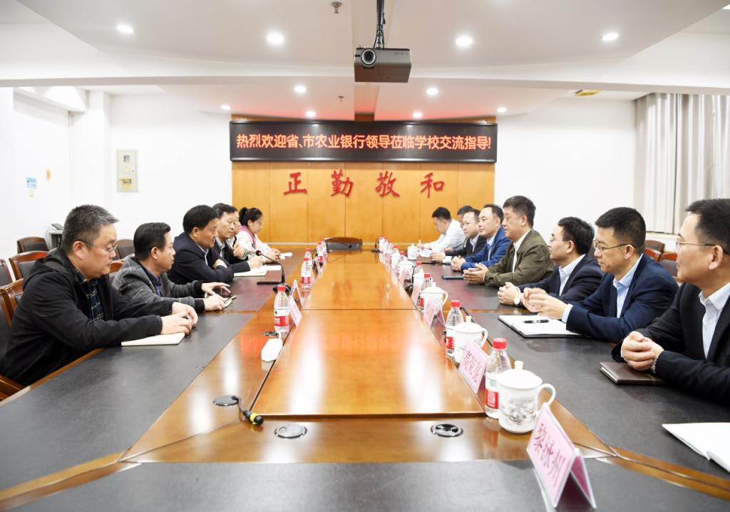 王磊對學校的熱情接待表示感謝,他介紹說,中國農業銀行始終深入貫徹落實黨中央、國務院“三農”工作決策部署,始終堅持面向“三農”基本定位,把服務鄉村振興、助力共同富裕作為全行工作的重中之重,努力打造服務鄉村振興領軍銀行,為國家全面推進鄉村振興、促進共同富裕提供高質量金融服務。據了解學校也非常重視在鄉村振興事業中貢獻自己的智慧和力量,例如,在為都昌縣推進“數字鄉村”建設項目,已經取得非常不錯的成績,并表示今后要進一步加強與學校校合作,構建長期合作關系。