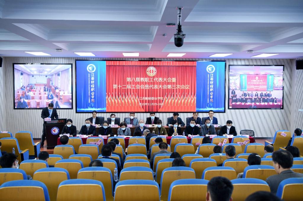 下午2:30,大會繼續進行。會議表決通過了《學校工作2021年工作報告》《學校2021年預算執行情況和2022年預算安排情況的報告》《學校工會2021年度工作報告》《上次教代會提案辦理情況和本次教代會提案征集情況的報告》《學校教代會實施辦法》《學校教代會提案工作規定》,通過了新修訂的《江西財經職業學院章程》《校訓、校風、學校精神和辦學理念》《江西財經職業學院在職教職工攻讀博士學位管理辦法》,通過了大會決議。