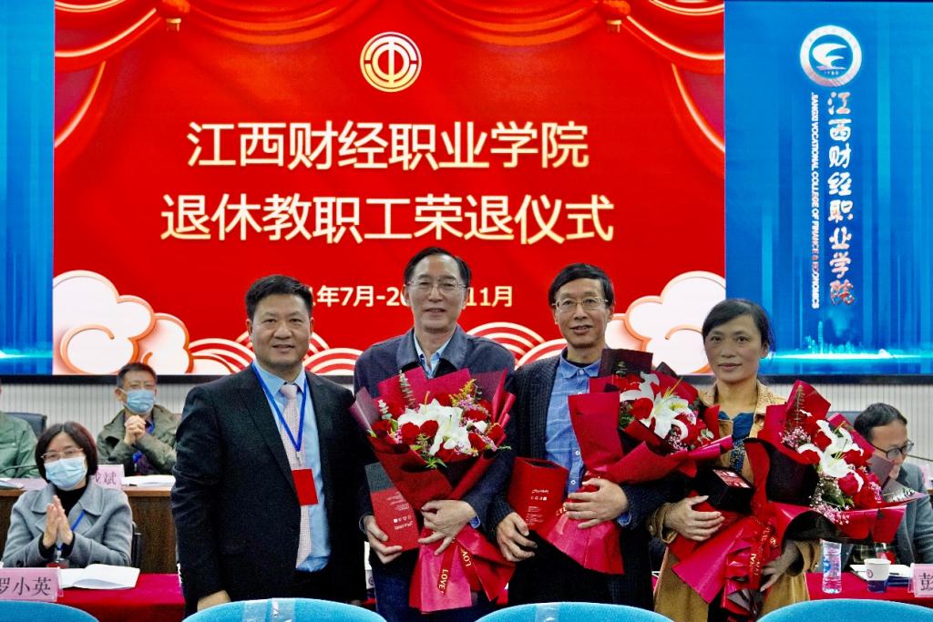 會上,還舉行了2021年7月-2022年11月退休教職工榮退儀式,校領導為光榮退休的教職工代表頒發了榮譽獎杯并獻上鮮花。