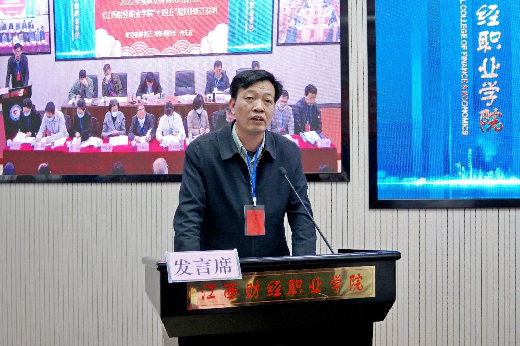 會議聽取了校黨委副書記、常務副校長何先應作的《學校2021年預算執行情況和2022年預算安排情況的報告》《江西財經職業“十四五”規劃》修訂說明;校黨委委員、紀委書記闕滬平作的《學校2021年度作風建設工作報告》;工會副主席門綿作的《踔厲奮發 勇毅前行 組織動員廣大教職工為全面推進學校高質量發展而團結奮斗》的工會工作報告、《新校區人才公寓建設情況匯報》和《學校教代會實施辦法》《學校教代會提案工作規定》起草說明;涂章橋同志作的《上次教代會提案辦理情況和本次教代會提案征集情況的報告》《江西財經職業學院教師職稱評審試行辦法》和《教職工在職攻讀博士學位管理辦法》修訂說明;黎小平同志作的《江西財經職業學院章程》修訂說明;張圣同志作的《學校校訓、校風、學校精神和辦學理念》修訂說明;余叨燈同志作的《新校區項目建設情況報告》。