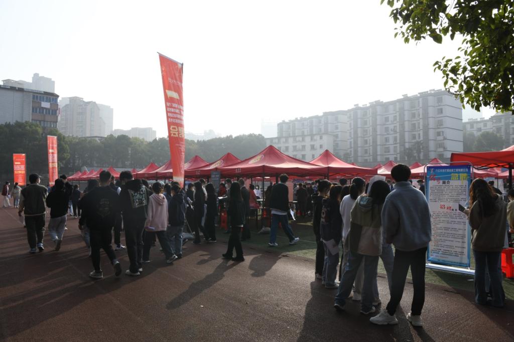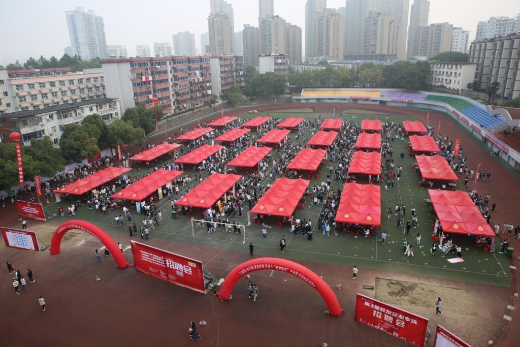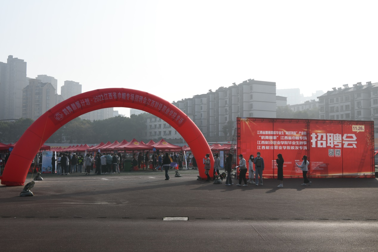 風華正茂揚帆起,精準對接促就業(yè)。為進一步貫徹落實黨的二十大精神和黨中央、國務(wù)院“六穩(wěn)”“六保”重大決策部署,積極響應(yīng)省委、省政府關(guān)于引導(dǎo)和鼓勵畢業(yè)生留贛就業(yè)的工作要求,堅持統(tǒng)籌疫情防控與就業(yè)工作,促進我校2023屆畢業(yè)生高質(zhì)量充分就業(yè),根據(jù)教育部辦公廳和省教育廳開展2023屆畢業(yè)生“校園招聘月”活動有關(guān)要求,11月26日,我校在學(xué)校田徑場成功舉辦江西省2023屆高校畢業(yè)生“商貿(mào)物流”產(chǎn)業(yè)鏈專場招聘會暨“鶴舞贛鄱”江西省巾幗專場招聘會。