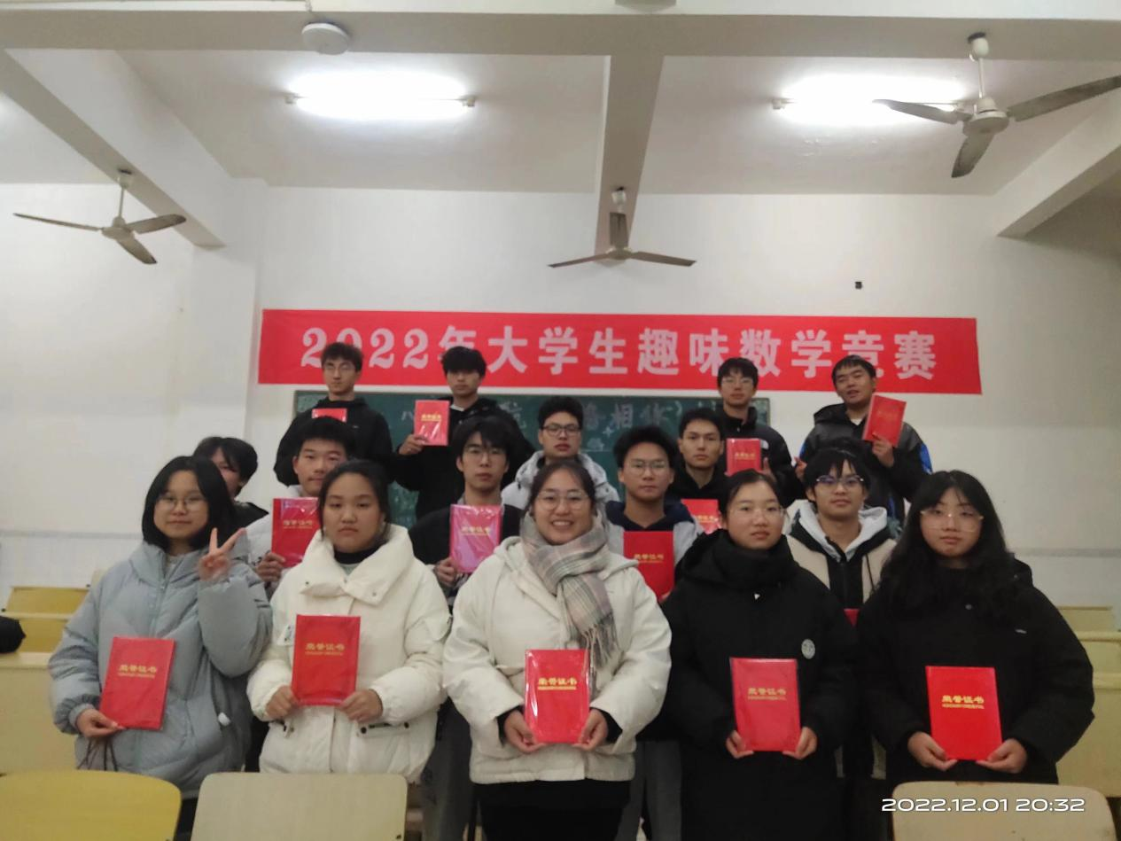 江西財經職業學院第十二屆大學生趣味數學競賽于2022年11月23日至12月1日隆重舉行。競賽分為初賽、復賽和決賽三個環節,經過激烈角逐,2022級大數據與會計5班榮獲特等獎,2022級國際經濟與貿易1班榮獲一等獎,2022級大數據與會計(業財數智化融合)1班和2022級大數據與會計2班榮獲二等獎,2022級大數據與會計8班和2022級工程造價2班榮獲三等獎。