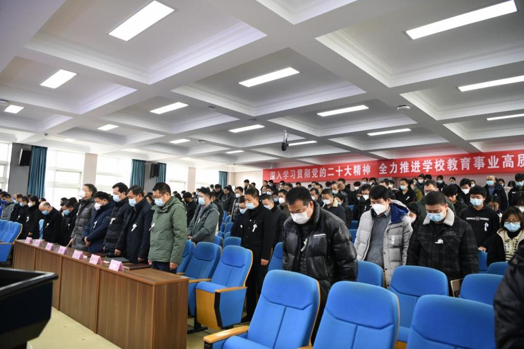 12月6日上午10時,黨中央、全國人大常委會、國務(wù)院、全國政協(xié)、中央軍委在北京人民大會堂隆重舉行江澤民同志追悼大會。我校在綜合樓七樓新時代文明實踐中心同步收看直播,學(xué)校領(lǐng)導(dǎo)班子成員、全體中層干部、師生代表共計300余人參加。學(xué)校下半旗,全體默哀3分鐘悼念江澤民同志逝世。