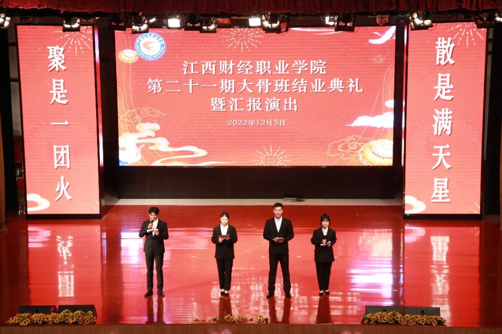 12月5日,我校 “青馬工程”第21期“財院之星”大學生骨干培訓班結業(yè)典禮暨匯報演出在英才交流中心舉行。校團委全體老師、第二十一期大骨班學員以及團委各部門代表共計230余人參加了本次結業(yè)典禮。