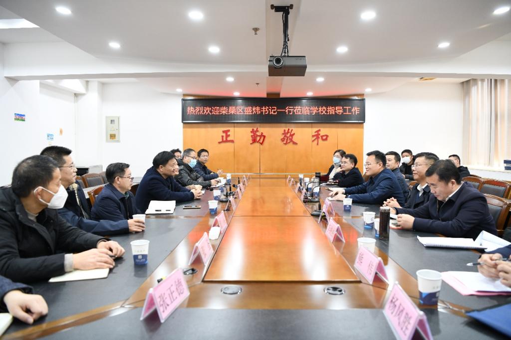 2023年1月10日下午,柴桑區委書記盛煒、區政府副區長聶曉峰及相關部門負責人一行到我校走訪交流。校黨委書記劉彪文、校長彭慧熱情接待了盛煒書記一行,黨委委員邱家明和宣傳部、招生就業處、教務處、對外合作與交流中心、工商管理學院、創新創業實踐學院等部門負責人參加座談。