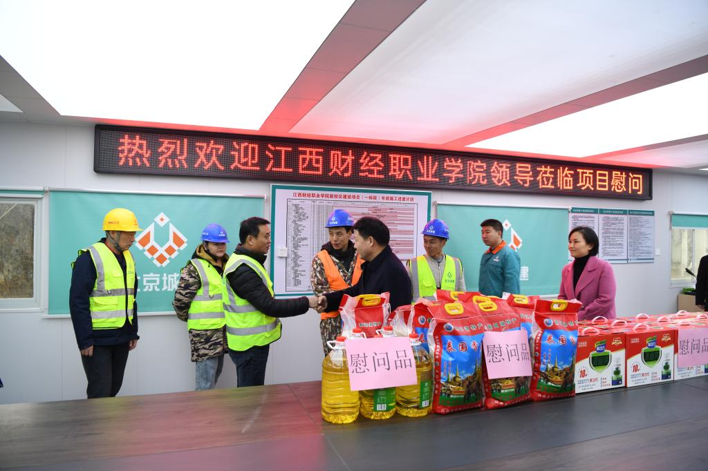 隨后,劉彪文、彭慧一行來到學校新校區建設工地,看望慰問春節期間留守的項目管理人員及工人,并代表學校向他們致以新春問候和美好祝愿,叮囑他們注意施工安全,保重身體健康,平平安安過年。