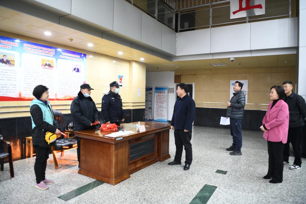 劉彪文、彭慧一行冒著蒙蒙細雨,先后來到學校值班室、綜合樓大廳、水電維修中心、圖文信息中心、學校東西門保安崗亭等處,與值班人員熱情握手,并代表學校致以新春問候和美好祝愿,叮囑他們要克服困難、認真履責,扎實做好值班值守、校園巡查、校門管理等各項工作,確保春節期間學校平安和諧穩定。