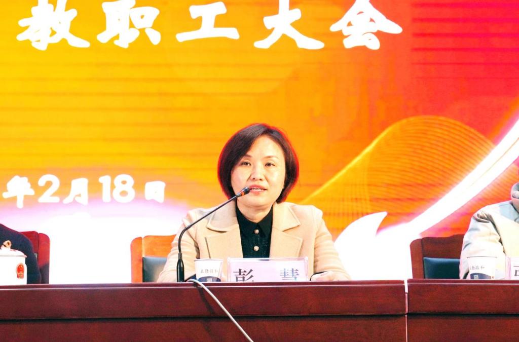 黨委副書記、校長彭慧從人才培養(yǎng)、招生就業(yè)、隊伍建設(shè)、學生工作、校園建設(shè)、社會服務(wù)、管理服務(wù)、平安校園建設(shè)、全面從嚴治黨等九個方面對2022年工作進行了全面的總結(jié),指出了當前工作中存在的不足和問題。并對2023年的工作進行了部署,她強調(diào),要堅持對標爭先,夯實學校建設(shè)改革發(fā)展基礎(chǔ);堅持系統(tǒng)推進,優(yōu)化多校區(qū)一體辦學格局;堅持深化改革,激發(fā)做實創(chuàng)先爭優(yōu)內(nèi)驅(qū)動力;堅持融合發(fā)展,助力經(jīng)濟社會發(fā)展賦能增勢;堅持精抓細管,打造平安和諧校園發(fā)展典范;堅持政治領(lǐng)航,推動全面從嚴治黨不斷向縱深發(fā)展。