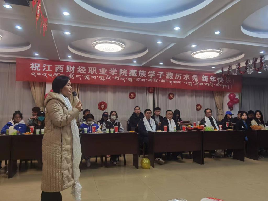 2月22日晚,江西財經職業學院藏歷水兔新年聯歡會在培訓中心舉辦。校黨委副書記、校長彭慧,校黨委委員劉鋒,學生工作處及二級學院黨總支負責人,少數民族輔導員及藏族學子歡聚一堂,在歡歌笑語中共同慶賀藏歷新年。