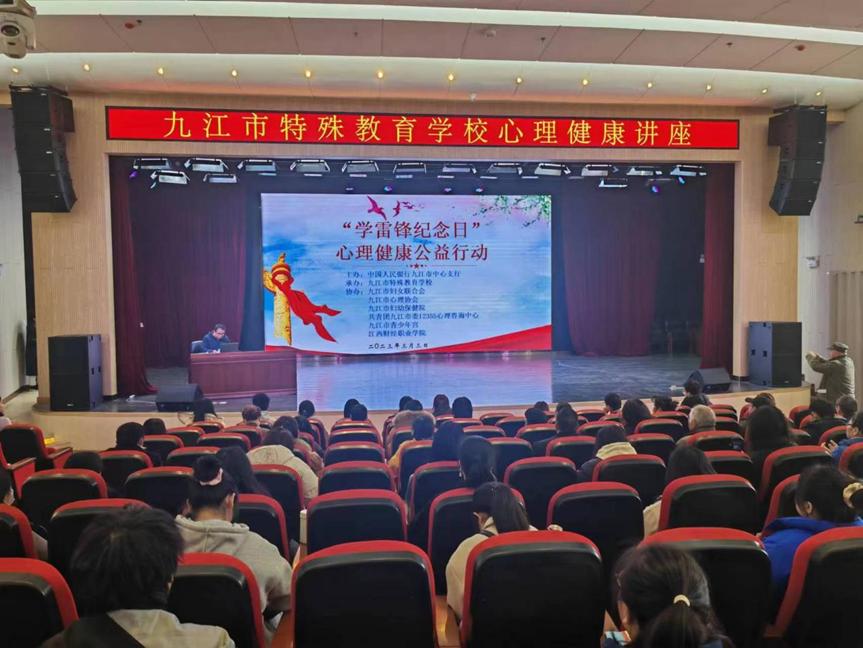 活動伊始,舉行了“學(xué)雷鋒紀念日”心理健康公益行動啟動儀式。我校師生與中國人民銀行九江市中心支行、九江市特殊教育學(xué)校、九江市婦女聯(lián)合會、九江市婦幼保健院、共青團九江市委12355心理咨詢中心、九江市青少年宮等相關(guān)單位負責(zé)同志共同參與了啟動儀式。