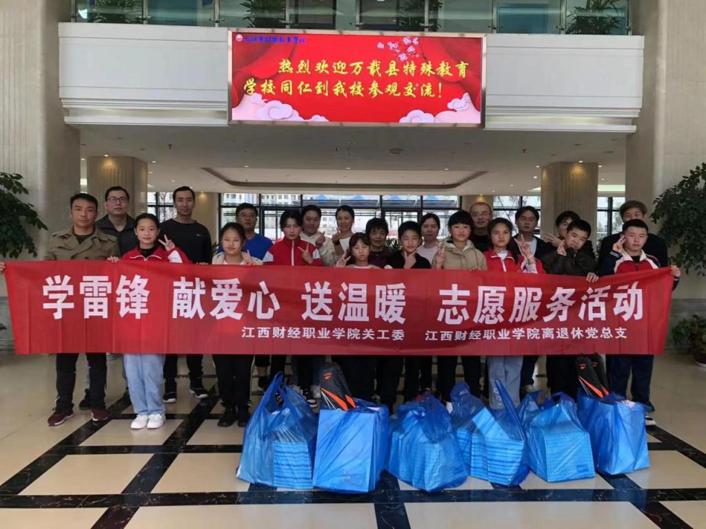 今年是毛澤東等老一輩革命家為雷鋒同志題詞60周年。為了貫徹落實近日習近平總書記對深入開展學雷鋒活動的重要指示精神,深刻把握雷鋒精神的時代內涵,更好地發揮黨員、干部模范帶頭作用,加強志愿服務保障和支持,不斷發展壯大學雷鋒志愿服務隊伍,讓學雷鋒在師生中蔚然成風,2023年3月10日下午,校關工委、離退休黨總支組織黨員干部和青年學生志愿者赴九江市特殊教育學校開展了“學雷鋒、獻愛心、送溫暖”志愿服務活動。校關工委常務副主任丁正員、離退休黨總支書記楊郁、副書記門綿等一行13名師生參加了本次活動。