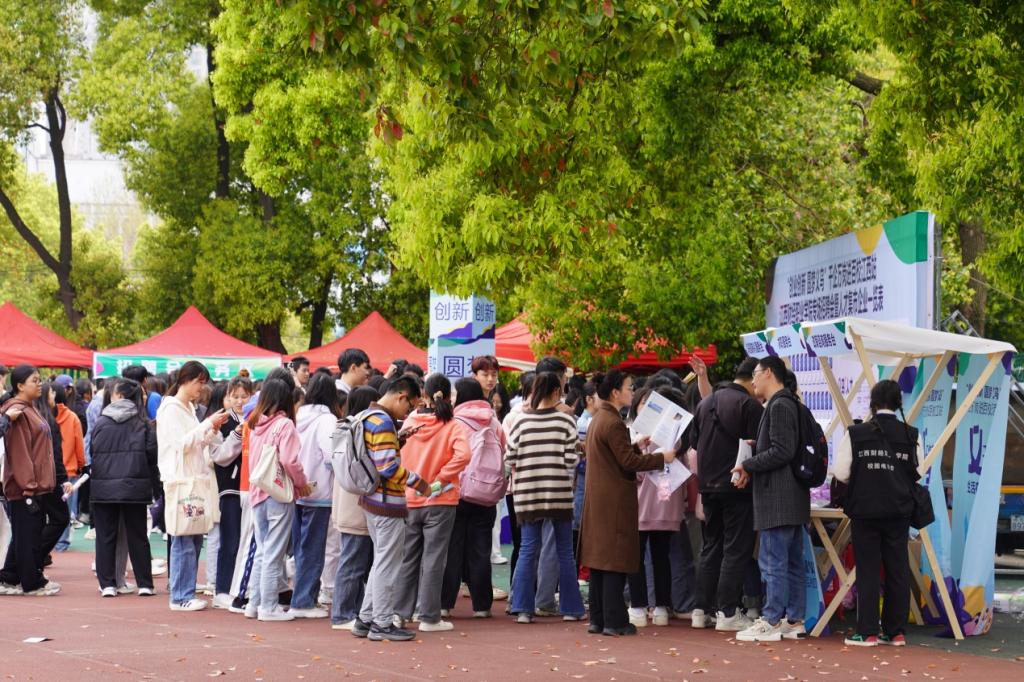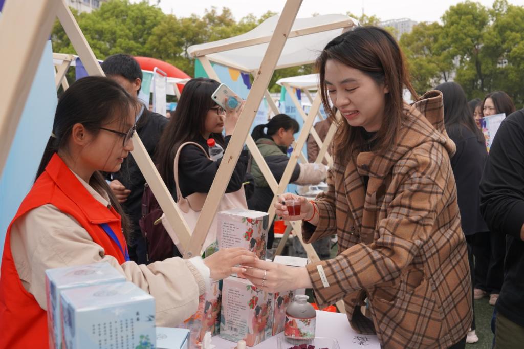 為提高招聘會的趣味性,增強對畢業生的吸引力,本次招聘會特別開展義烏人才集市活動,10個攤位為同學們帶來了義烏市的特色小吃和文創品牌,讓同學們能夠邊找工作邊吃美食,在求職的過程中充分感受義烏的城市特色和亮點。