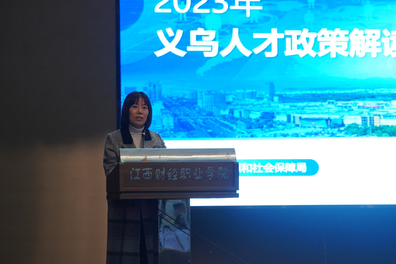 接下來,龔希明從大學(xué)生的實(shí)習(xí)、就業(yè)、創(chuàng)業(yè)、生活四個(gè)方面,講解了義烏市相關(guān)人才政策和就業(yè)創(chuàng)業(yè)環(huán)境。她表示,義烏市“量身定制”免費(fèi)食宿、交通補(bǔ)貼、生活補(bǔ)貼等就業(yè)幫扶政策,構(gòu)建“一周免費(fèi)住、三年半價(jià)租、購房直接補(bǔ)”的人才住房體系,歡迎我校學(xué)子積極赴義烏就業(yè)創(chuàng)業(yè)。