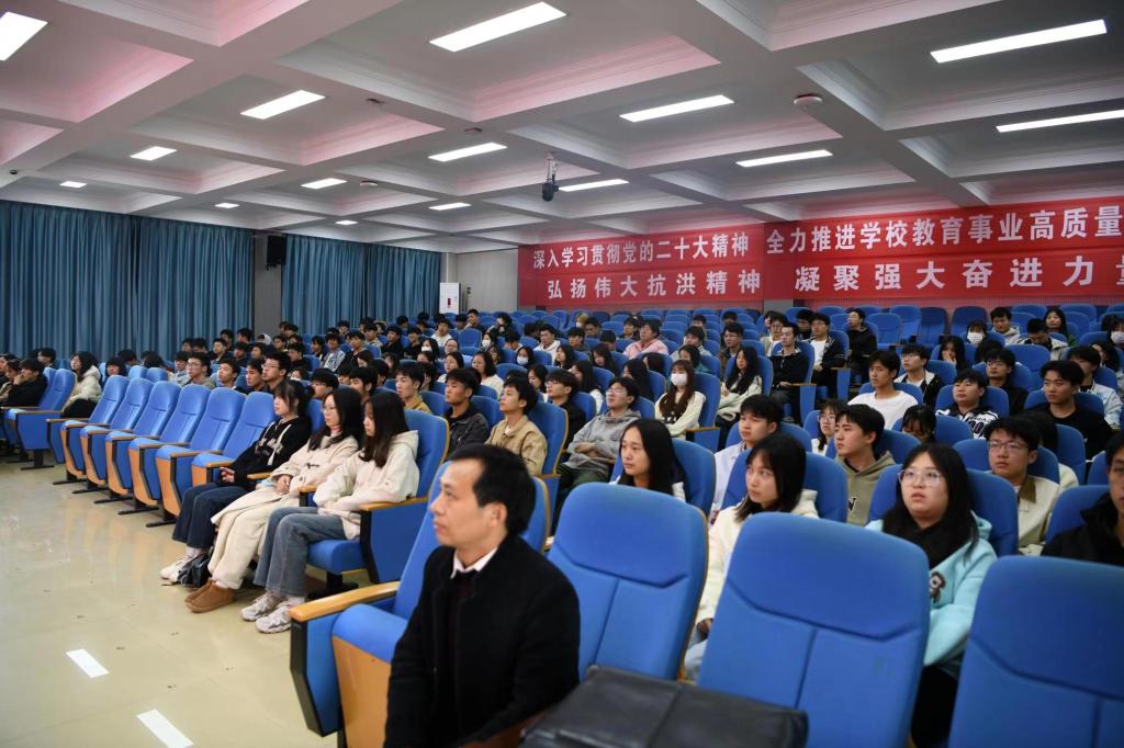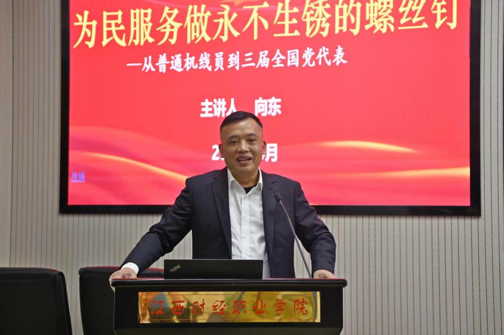 為貫徹落實江西省委教育工委、江西省教育廳《全國“大思政課”建設(shè)綜合改革試驗區(qū)江西問題式專題化團隊教學(xué)改革實施方案》,進一步加強“大思政課”建設(shè),2023年4月25日下午,學(xué)校邀請全國知識型職工標(biāo)兵、全國道德模范提名獎、全國五一勞動獎?wù)芦@得者、中國電信九江分公司督導(dǎo)兼向東黨支部書記、班長向東以“為民服務(wù)、做永不生銹的螺絲釘——從普通機線員到三屆全國黨代表”為題,開展“雙師同堂”教學(xué)。活動由馬克思主義學(xué)院、朱欣成名師工作室組織,城鄉(xiāng)建設(shè)學(xué)院和工商管理學(xué)院2022級學(xué)生代表和馬克思主義學(xué)院老師代表參加。