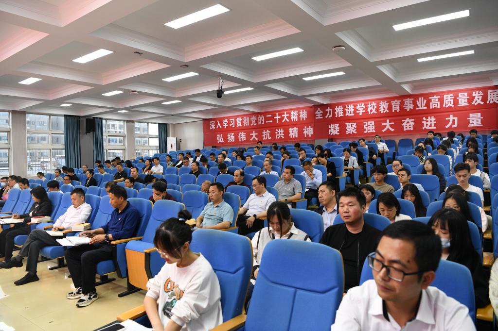 校黨委副書記、校長彭慧作動(dòng)員講話。彭慧指出,自去年開展“雙提升月”活動(dòng)以來,在全校上下的共同努力下,取得了階段性成效,各方面工作持續(xù)向上向好轉(zhuǎn)變。教學(xué)質(zhì)量和學(xué)生素質(zhì)提升是一項(xiàng)基礎(chǔ)工程,要常抓不懈。在全黨上下深入開展學(xué)習(xí)貫徹習(xí)近平新時(shí)代中國特色社會主義思想主題教育之際,開展好今年的“雙提升月”活動(dòng)具有十分重要的意義。一是思想上高度重視。加強(qiáng)師德師風(fēng)建設(shè),提升教師教書育人能力素質(zhì),培養(yǎng)德智體美勞全面發(fā)展的學(xué)生,是我們推動(dòng)黨的二十大精神落地,深入開展主題教育的重要舉措,也是提高辦學(xué)能力和水平的必然要求。我們要從時(shí)代的高度、長遠(yuǎn)的角度,充分認(rèn)識這項(xiàng)工作的重要意義。二是責(zé)任上全面壓實(shí)。教務(wù)處、學(xué)工處應(yīng)履行好牽頭責(zé)任,抓好統(tǒng)籌協(xié)調(diào)、工作推進(jìn);各二級學(xué)院、各部門要履行好主體責(zé)任,緊盯時(shí)間節(jié)點(diǎn)、工作要求和活動(dòng)內(nèi)容,抓好本單位相關(guān)活動(dòng)的組織工作,并在學(xué)校總體方案的基礎(chǔ)上,結(jié)合自身實(shí)際,制定具體的落實(shí)方案。三是行動(dòng)上協(xié)同聯(lián)動(dòng)。素質(zhì)提升是一項(xiàng)系統(tǒng)工程,涉及學(xué)校工作的方方面面,要牢固樹立全校“一盤棋”“一條心”的思想,變“單打獨(dú)斗”為“多元融合”,形成“上下聯(lián)動(dòng)、左右協(xié)同、共同推進(jìn)”的工作格局,做到“主題內(nèi)容協(xié)同”“活動(dòng)組織有力”“比學(xué)趕超有招”。