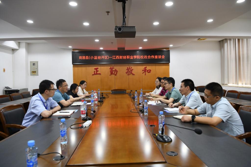 招聘會期間,學校與南昌縣(小藍經開區)舉行校政合作座談會,雙方就人才培養、畢業生就業、產教融合等工作展開交流討論。大家共同表示,要進一步加強“校政企”三方合作,強化優勢互補,努力構建校政企合作育人、合作就業、合作發展的新機制,促進畢業生高質量充分就業,為地方社會經濟發展提供智力支持。