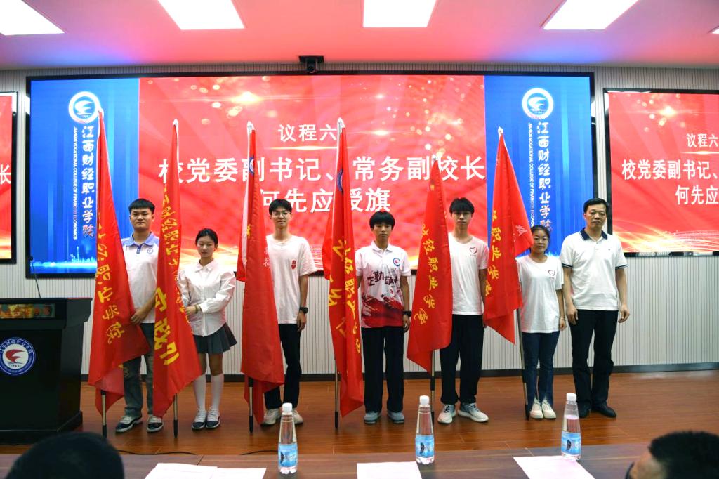 何先應向2023年暑期“三下鄉”社會實踐活動各實踐隊授旗。2023年暑期“三下鄉”社會實踐活動指導教師代表宗嘉、學生代表張群芳分別發言。