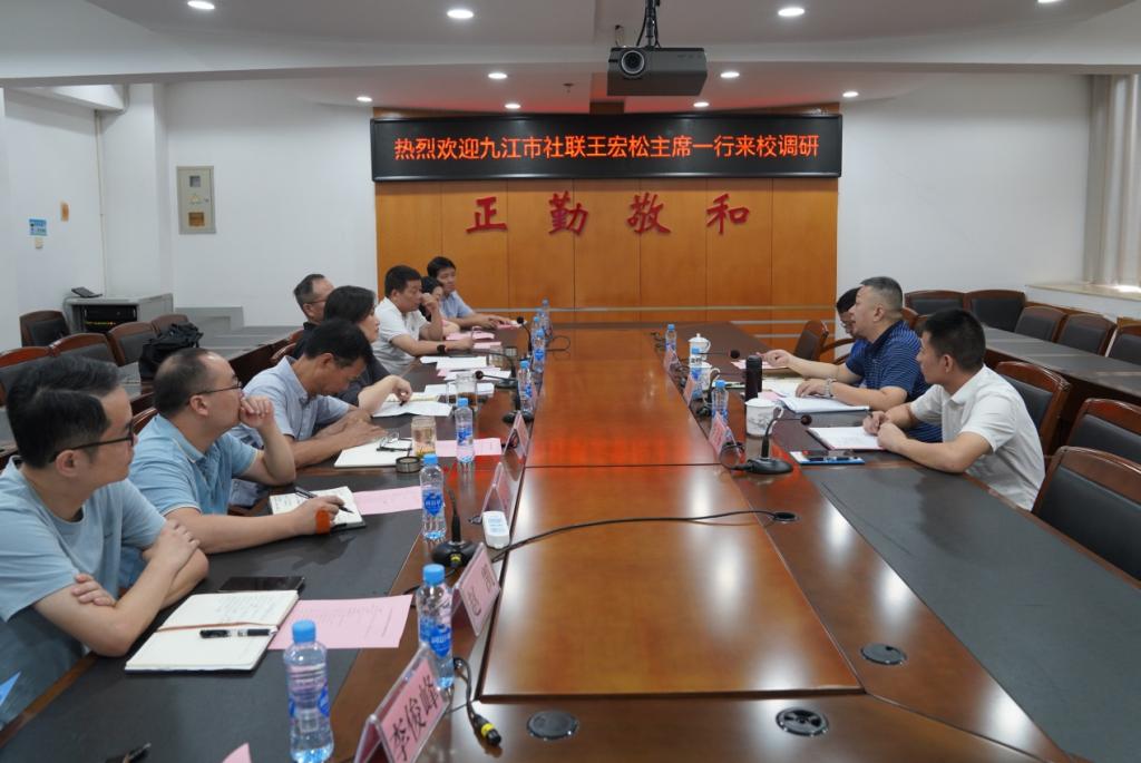 8月8日上午,九江市社會(huì)科學(xué)界聯(lián)合會(huì)主席王宏松一行三人來我校就“深化校地合作促進(jìn)校地共建”開展專題調(diào)研。校長(zhǎng)彭慧,校黨委委員、副校長(zhǎng)馮弋江以及學(xué)校相關(guān)部門負(fù)責(zé)同志參加調(diào)研座談。