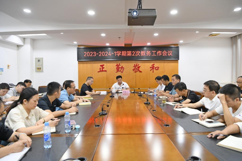 9月12日上午,學校在綜合樓1201會議室召開2023-2024-1學期第二次教務會。黨委書記劉彪文出席會議并講話,黨委委員、副校長馮弋江,二級學院、教務處相關部門負責同志以及雙高項目建設專班同志參加會議。