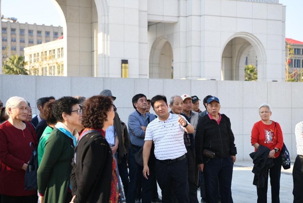 下午2時30分,老同志們乘車來到期盼已久的學校八里湖新校區(qū)參觀。劉彪文書記親自擔任向?qū)В蚶贤緜冊敿毥榻B了新校區(qū)的建設(shè)理念和總體建設(shè)情況,并帶領(lǐng)大家重點參觀了新校區(qū)的標志性建筑——圖書館和學校大門。站在圖書館十樓的觀景平臺上,俯瞰新校區(qū)全貌,老同志們在看到了一棟棟拔地而起、錯落有致的樓房和場館之后,紛紛感慨新校區(qū)的建設(shè)終于夢想成真,心中感到無比自豪。最后,在學校新校區(qū)大門前,大家合影留念,圓滿結(jié)束了本次重陽節(jié)的慶祝活動。