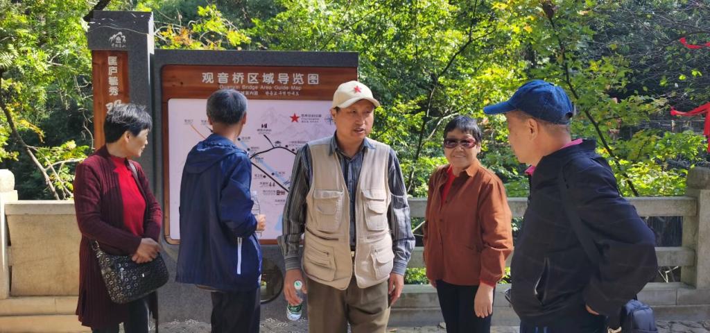 上午8時整,學校近60位離退休老同志乘車來到國家重點文物保護單位—廬山觀音橋景區(qū)參觀。進入景區(qū),首先映入眼簾的是一條通往觀音橋的林間古道,老同志們?nèi)宄扇海叫性诠诺乐希蕾p著古道兩旁美景的同時,共敘著往事和友情,其樂融融。來到始建于北宋時期的古老石拱橋—觀音橋,老同志們駐足在古橋之上,感受它的歷史厚重感,紛紛感嘆中國古代橋梁建筑藝術(shù)之博大精深。