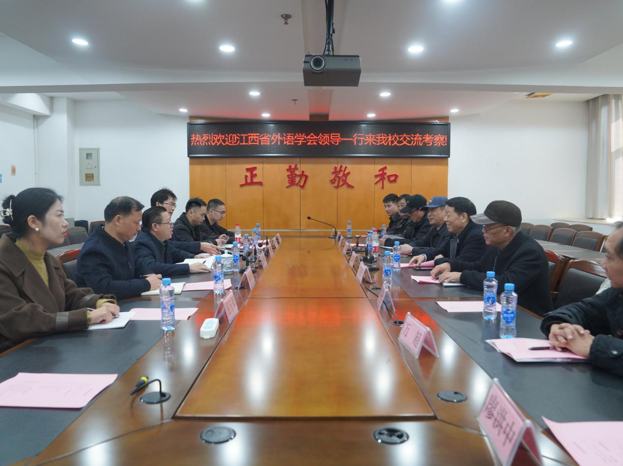 11月17日上午,江西省外語學(xué)會會長況新華、副會長胡錦章、副會長兼秘書長于洪穎一行9人來我校調(diào)研。座談會在綜合樓1201會議室舉行,副校長邱家明出席會議。