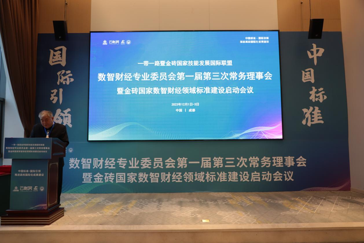 12月2日,“數(shù)智財經(jīng)專業(yè)委員會第一屆第三次常務(wù)理事會暨金磚國家數(shù)智財經(jīng)領(lǐng)域標準建設(shè)啟動會議”在四川財經(jīng)職業(yè)學(xué)院隆重舉行,來自“一帶一路”暨金磚國家技能發(fā)展國際聯(lián)盟、廈門市金磚未來技能發(fā)展與技術(shù)創(chuàng)新研究院、全國各大高職院校、財經(jīng)行業(yè)企業(yè)和教育服務(wù)企業(yè)的近100人參會。我校黨委委員、副校長馮弋江應(yīng)邀出席會議。會議由中國商業(yè)會計學(xué)會職業(yè)教育分會會長、“一帶一路”暨金磚國家技能發(fā)展國際聯(lián)盟數(shù)智財經(jīng)工作委員會常務(wù)理事趙麗生教授主持。