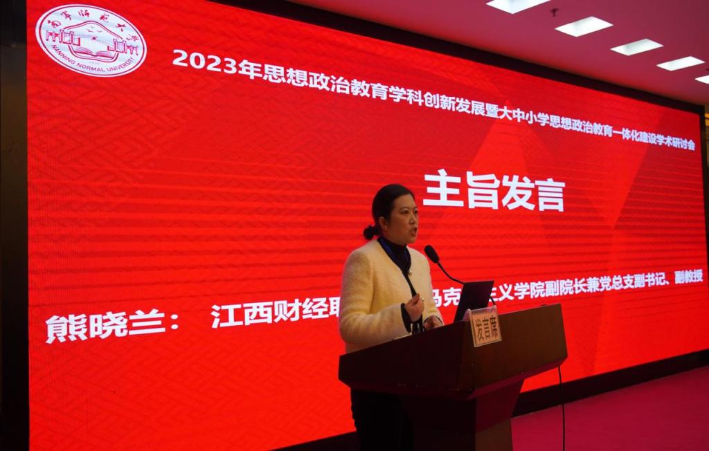 為進一步加強馬克思主義理論學科建設,完善思想政治工作體系,推進大中小學思想政治教育一體化建設,全面落實立德樹人根本任務。12月8日至10日,2023年思想政治教育學科創(chuàng)新發(fā)展暨大中小學思想政治教育一體化建設學術研討會在南寧舉行。我校馬克思主義學院副院長熊曉蘭應邀參會。