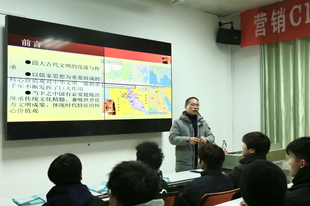 12月20日下午,校黨委委員、副校長馮弋江在潯陽校區為22級中小企業創業與經營專業學生講授了以《社會主義核心價值觀》為題的思政課。工商管理學院黨總支負責人、相關班主任到場聽課。