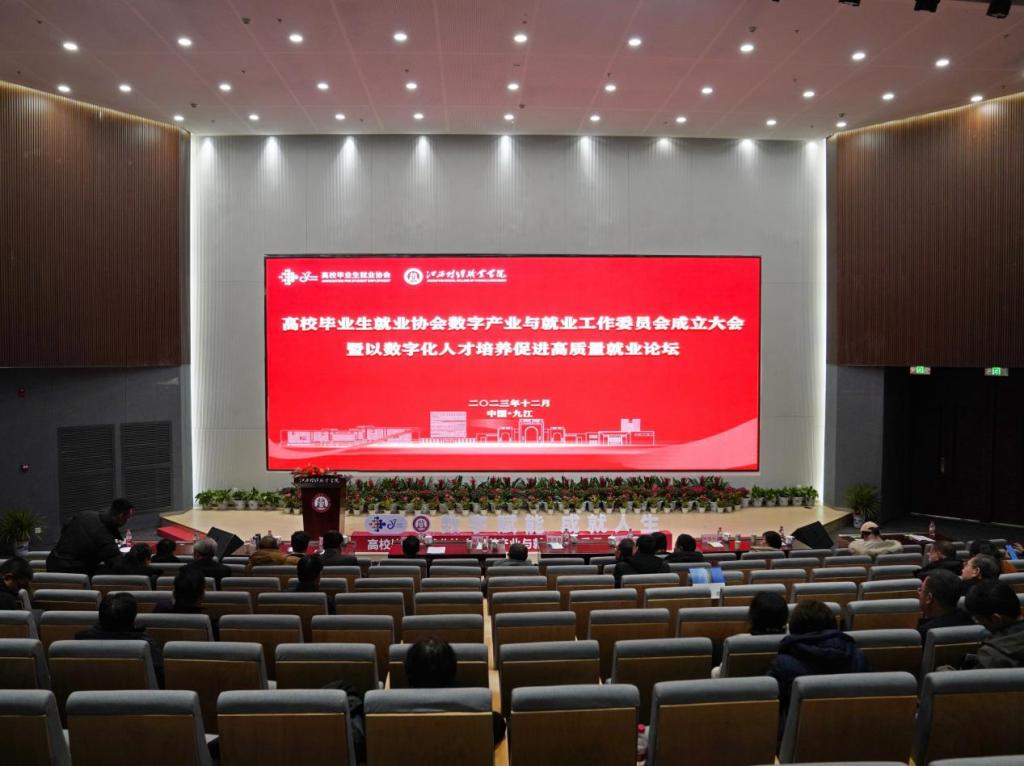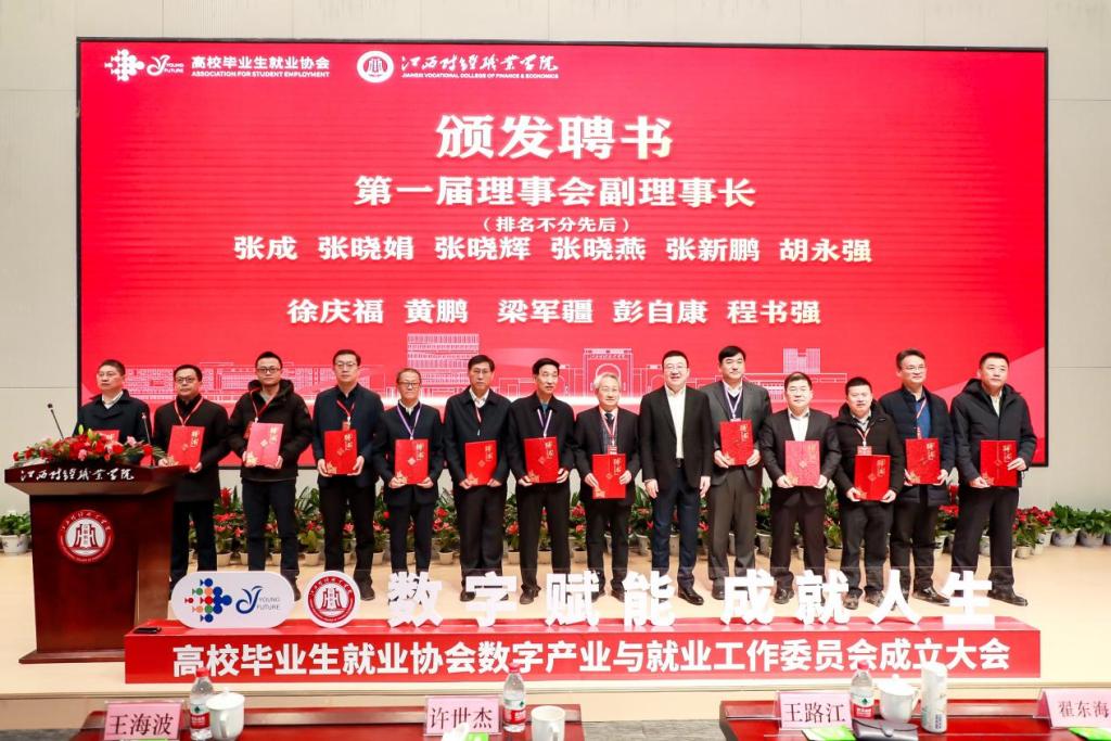 高校畢業生就業協會是由教育部主管、致力于大學生就業工作的全國性行業協會,經高校畢業生就業協會批準,決定成立數字產業與就業工作委員會。出席成立大會的領導和嘉賓有:教育部原黨組成員、副部長張天保同志,高校畢業生就業協會會長王路江研究員,江西省政協常委、教科衛體委員會主任郭杰忠同志,江西省財政廳黨組成員、副廳長劉力群同志,江西省工業和信息化廳黨組成員、副廳長江明成同志,九江市政府副市長、農工黨市委會主委丁喜春同志,高校畢業生就業協會副會長許世杰同志,江西省教育評估監測研究院黨委書記劉靜儉同志,江西省就業創業服務中心主任郭錦亮同志,江西財經職業學院黨委書記劉彪文教授,江西財經職業學院校長彭慧同志和來自全國150余所本??圃盒!?00余家企業單位負責人。我校校領導及中層干部、部分師生代表參加了會議。