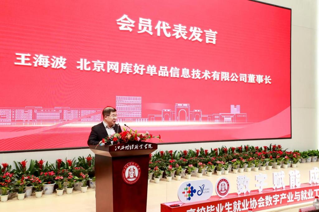 會員代表、北京網庫好單品信息技術有限公司董事長王海波在發言時表示,希望和各高校共同打造最實用的、為實體企業提供產業數字化人才的有效的課程;希望每個學校都能立足在當地,立足在本地,為特色的產業集群服務。也希望數就工委會能夠對接目前的970萬的實體企業,真正為實體企業提供產業數字人才。