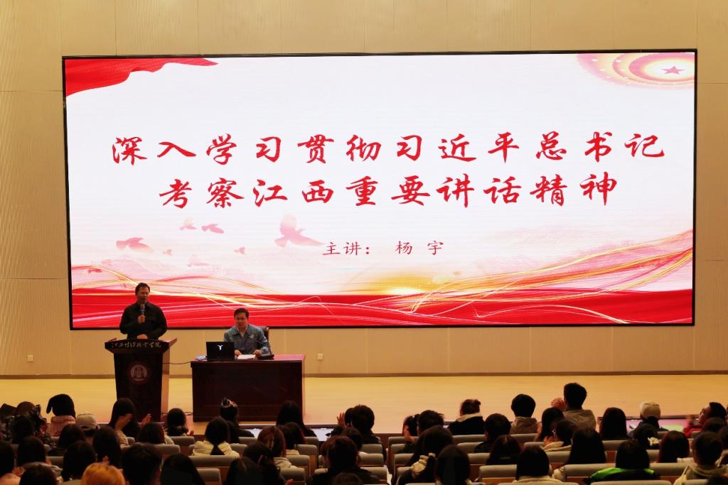 1月2日,校團委在八里湖校區行政樓報告廳舉辦了學習貫徹習近平總書記考察江西重要講話精神宣講會。宣講會由中國石化九江分公司團委書記楊宇主講,校院兩級“青馬工程”學員及各學院團學骨干300余名學生參加。