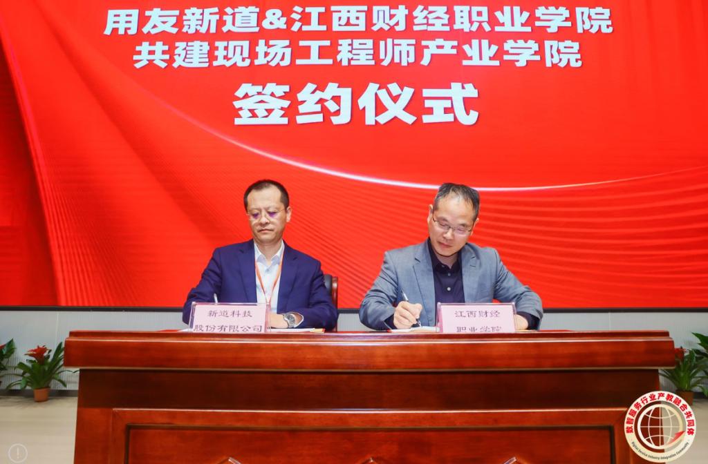 大會還舉行了簽約儀式,江西財經職業學院與用友新道將共建現場工程師產業學院。