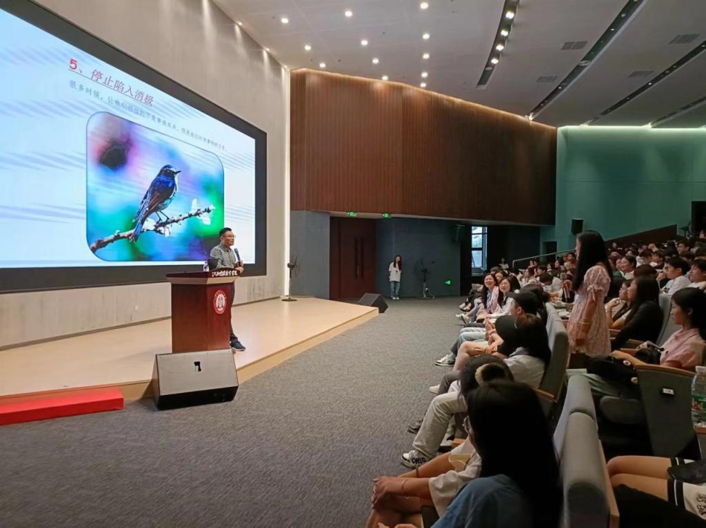 在快節奏的現代生活中,我們時常感到心力交瘁,仿佛被無形的壓力束縛著。這種內心的消耗,不僅影響我們的情緒狀態,更可能阻礙我們追求幸福生活的步伐。在講座中,高美才教授從分析自我人格動力類型到講解精神內耗的內在心理機制,運用自體關系模型講述內耗與賦能的關系,幫助學生調節心態;他以幽默風趣的授課風格,用生動有趣的小故事和生活當中各種各樣的例子來講述怎么認識來源于生活中的焦慮與內耗,怎樣正確處理在生活中的困難與挑戰,如何放下心中的焦慮,減少內耗。