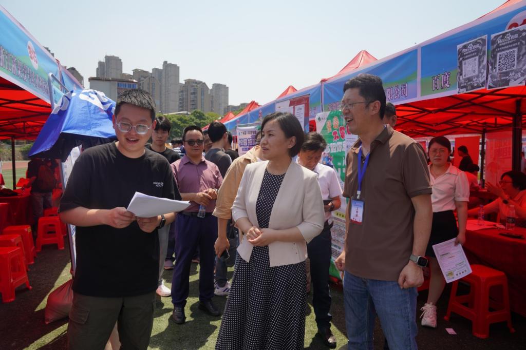 招聘會上,彭慧與企業(yè)代表親切交談,對他們前來參加招聘會表示衷心感謝,并積極向用人單位推薦我校畢業(yè)生。她詳細(xì)了解各用人單位的招聘職位、人數(shù)、薪資待遇等情況,圍繞加強(qiáng)人才培養(yǎng)和供需對接進(jìn)行深入交流。她還對前來求職的畢業(yè)生進(jìn)行了現(xiàn)場指導(dǎo)和交流,勉勵大家積極面對就業(yè)形勢,找準(zhǔn)自身定位,樹立求職信心,主動求職、大膽競爭,爭取早日找到滿意的工作。