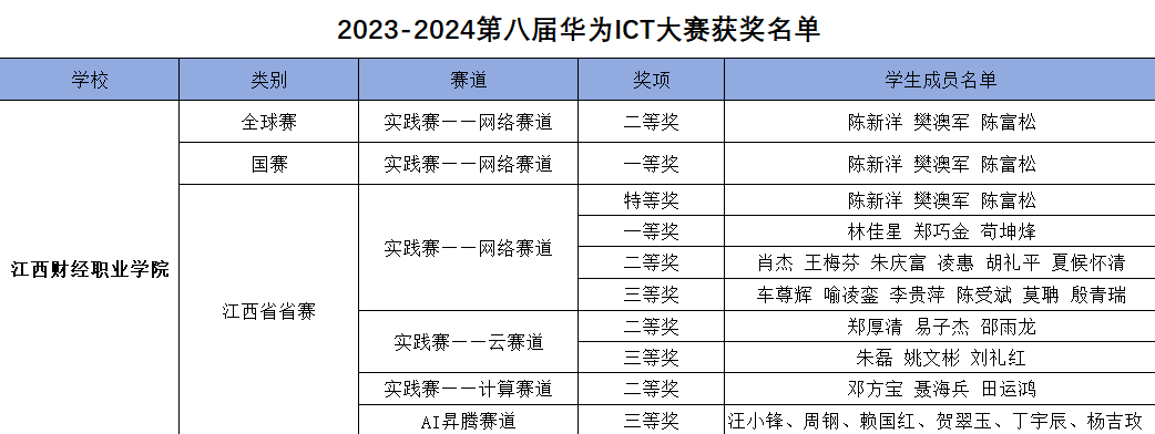 至此,第八屆華為ICT大賽圓滿收官。展望未來,江西財經職業學院鯤鵬產業學院將繼續深度探索校企合作模式,進一步加大人才創新培養力度,提升學生核心競爭能力,致力于培養更多優秀ICT人才,攜手“政校企行”推動ICT領域的人才培養和技術革新,為未來的ICT產業發展貢獻智慧與力量。實戰礪能、賽場促學、共筑華為ICT大賽夢。期待22級、23級的同學們在第九屆華為ICT大賽中擁有精彩表現,取得優異成績!