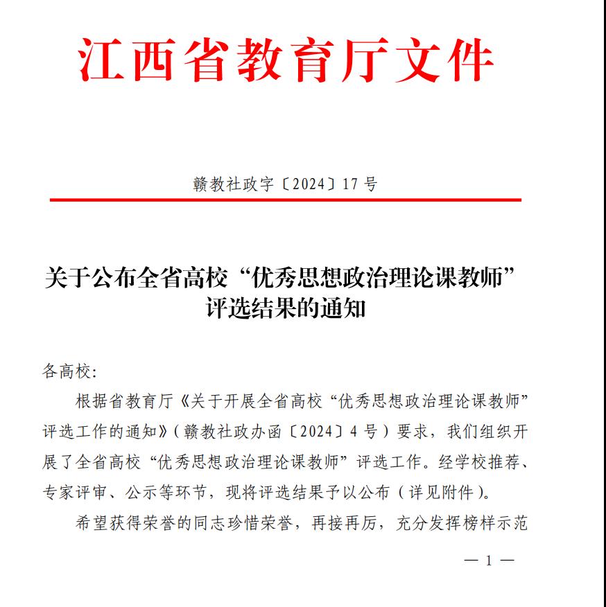 近日,江西省教育廳公布了全省高校“優秀思想政治理論課教師”評選結果,我校思政教師黃亮憑借出色的教學能力和深厚的學術造詣,獲此殊榮。這既是對黃亮老師個人辛勤付出的肯定,也是對學校思政課教育教學質量和師資建設的高度認可。