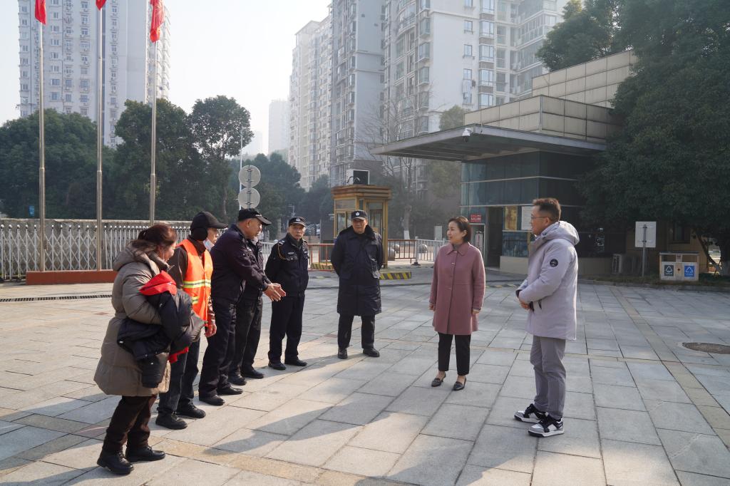 彭慧一行先后來到八里湖校區和潯陽校區,與門衛崗亭、值班室、水電維修中心、學生宿舍等處值班人員親切交談,詳細了解在崗值勤情況、各項設施設備運轉情況、安全管理措施落實到位情況等,對他們舍小家顧大家、全力保障假期校園安全所做的奉獻表示感謝,并致以誠摯的節日問候和新春祝福。