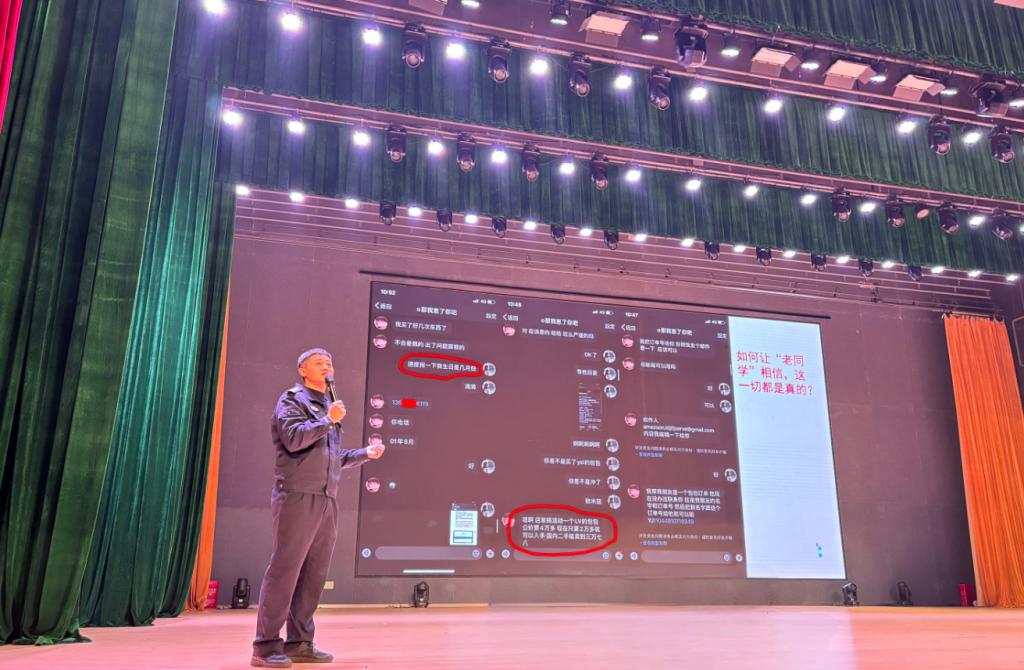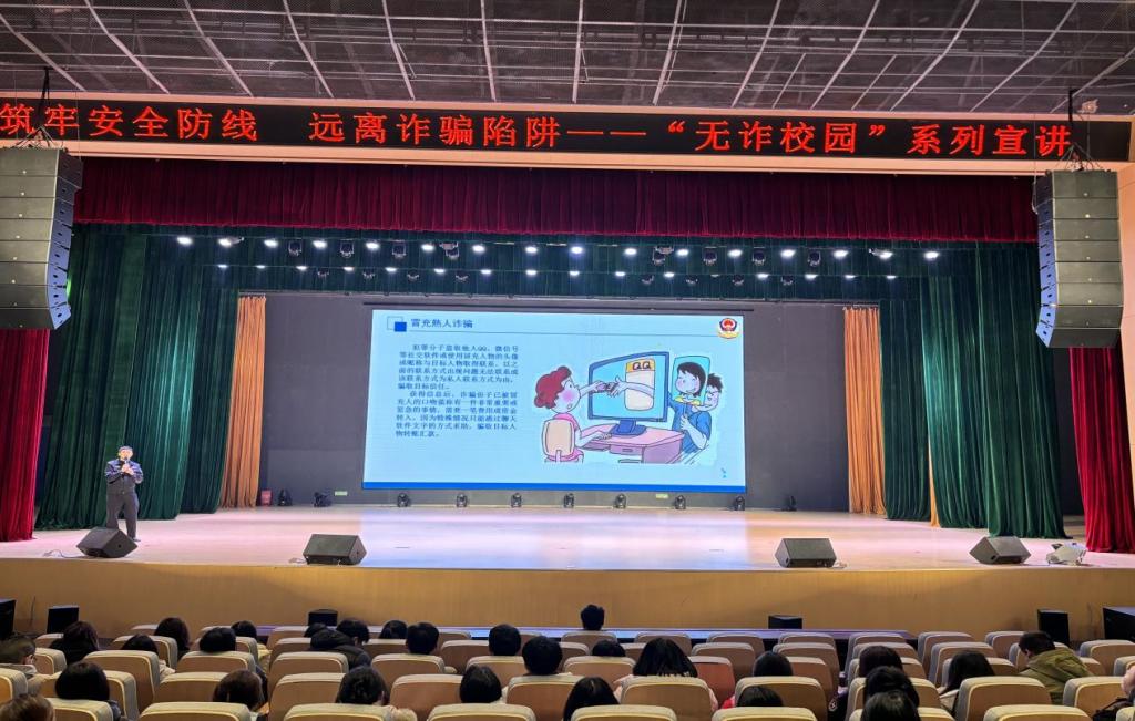 陳警官結合近年來發生在校園內的典型詐騙案例,深入剖析了詐騙分子的作案手段和特點,提醒師生們在日常生活中提高警惕,防范各類詐騙。