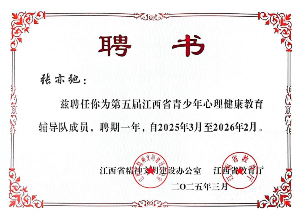 本次入選是繼我校王美娟老師成功入選第二屆、第四屆江西省心理健康“百場輔導進百校”主題實踐活動后的又一次成功入選,不僅肯定了我校心理健康教育教師的專業能力與職業素養,更是對學校今后心理健康教育工作的激勵。關愛青少年,從“心”開始。學校將一如既往地大力支持全省青少年心理健康輔導工作!