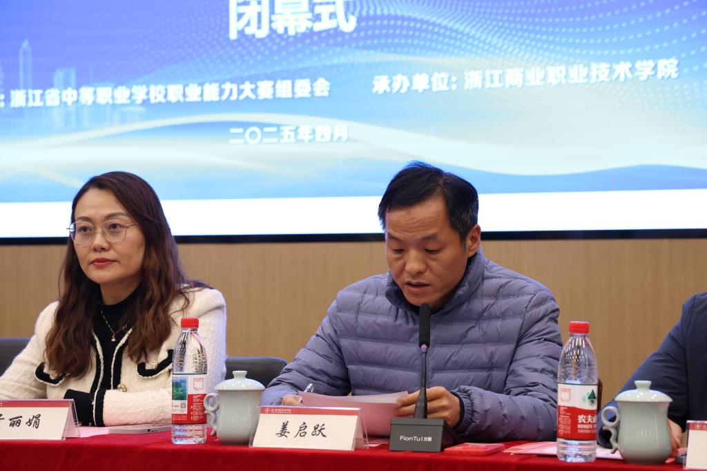 2025年4月1-2日,浙江省中等職業學校職業能力大賽“企業經營沙盤模擬賽項”在浙江商業職業技術學院舉行,該賽項由浙江省教育廳主辦、浙江商業職業技術學院承辦、新道科技股份有限公司協辦。本次大賽共有來自浙江省20支隊伍80名選手同場競技,我校現代服務學院(本科部)負責人姜啟躍應組委會邀請擔任賽項裁判長,并對賽項進行點評總結。