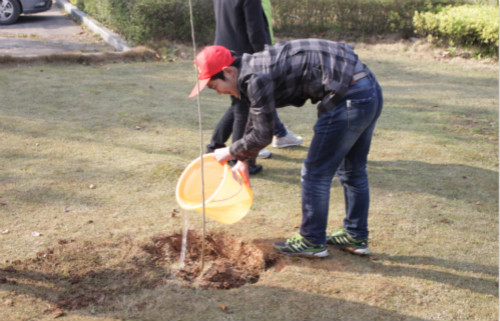 早上8:30,志愿者們先從校半月臺(tái)出發(fā),拿著鋤頭,鏟子,水桶等勞動(dòng)工具,來到綠坪,進(jìn)行分工合作,你定點(diǎn)我刨土,你扶樹我填土,你松土我澆水。大家不顧勞累,不嫌泥土,相互配合,每一個(gè)環(huán)節(jié)都認(rèn)真對(duì)待。全體成員干勁十足,活動(dòng)現(xiàn)場(chǎng)一片熱火朝天的景象,成為春天一道美麗又難忘的風(fēng)景。然而快樂的時(shí)光總是短暫的,兩個(gè)小時(shí)后,植樹活動(dòng)在志愿者們最后合影的歡笑聲中圓滿結(jié)束。