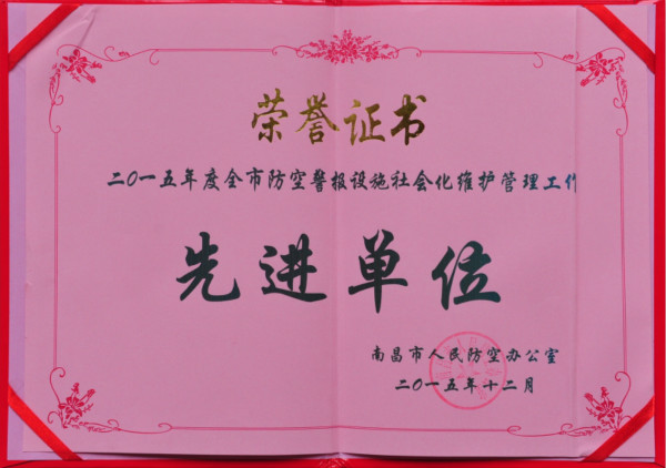 南昌市2015年度防空警報設施社會化維護管理總結會議日前在市人防指揮信息保障中心舉行,南昌市人防辦副主任周建東,指揮信息保障中心主任王巖、書記胡榮鍵、通訊指揮處處長吳國興等領導出席會議。會議對2015年度警報器社會化維護管理暨警報器試鳴工作先進單位和先進個人進行表彰。南昌校區榮獲2015年全市防空警報設施社會化維護管理暨警報試鳴工作先進單位稱號。