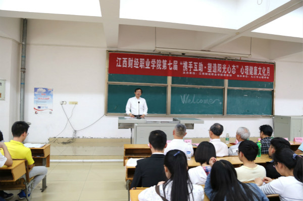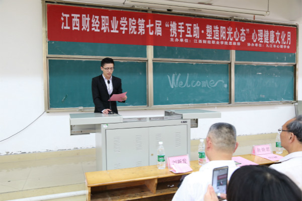 為秉承我校“務(wù)實、責(zé)任、合力”的精神,落實“五有”教育觀,培養(yǎng)“四具備”人才,推動“四導(dǎo)工作”,深化“心理疏導(dǎo)”,豐富校園文化生活,關(guān)注青年學(xué)子心靈成長,同時也為了更好地迎接“5.25”大學(xué)生心理健康日的到來,5月4日下午4:30,由我校思政部主辦、九江市心理學(xué)會協(xié)辦,以“攜手互助?塑造陽光心態(tài)”為活動主題的“江西財經(jīng)職業(yè)學(xué)院第七屆心理健康文化月”開幕式在綜合樓階梯教室五隆重舉行。