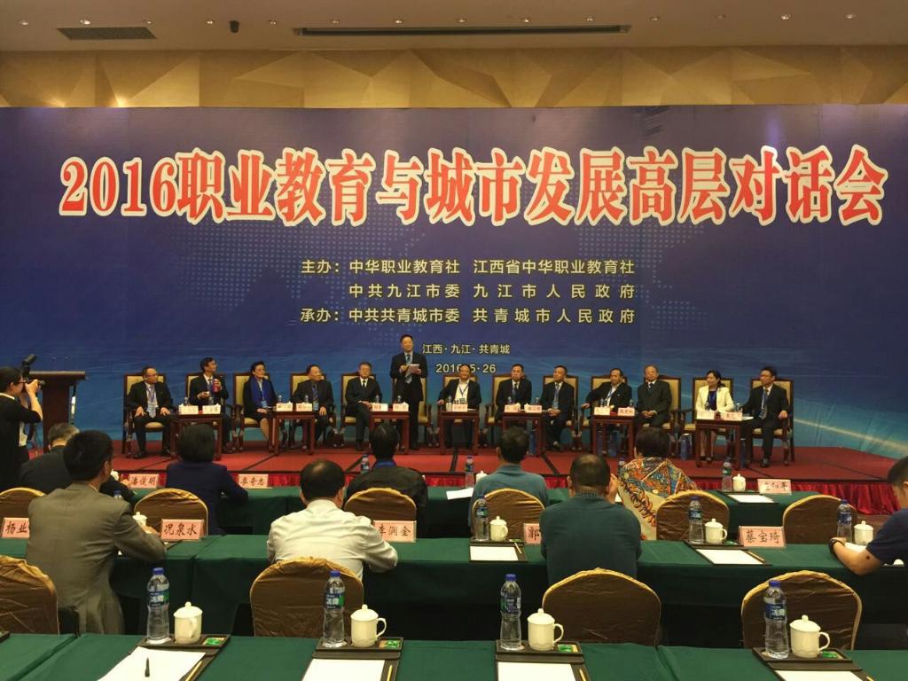 5月26日,由中華職業教育社、江西省中華職業教育社、中共九江市委、九江市人民政府主辦的“2016職業教育與城市發展高層對話會”在共青城舉行。全國人大常委會副委員長、中華職業教育社理事長陳昌智出席會議。國內知名專家學者、省市有關部門領導、相關高校和企業負責人齊聚一堂,共同把脈職業教育城校聯動。校黨委書記何桑教授應邀參加對話會。