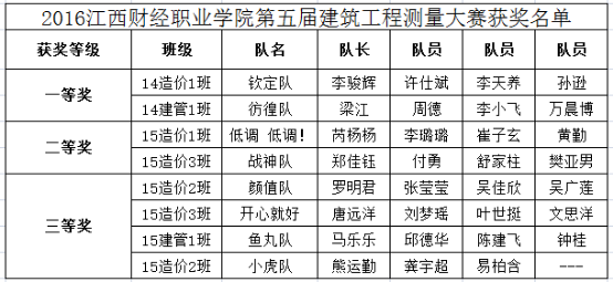 本次比賽分兩個項目:四等水準和全站儀放樣。我校建筑工程類專業學生經過層層選拔后共有17個隊近70人參賽,最后,比賽決出一等獎2隊,二等獎2隊,三等獎4隊。